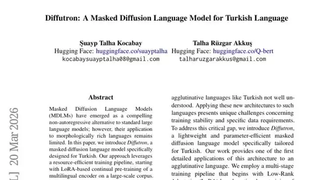 要说2026年语言AI领域有什么值得关注的突破,Hugging Face团队关于土耳其语模型的那篇论文(arXiv:2603.20466v1)绝对算一个。它首次成功地将掩码扩散语言模型,应用到了土耳其语这样形态极其丰富的语言上,为整个非自回归文本生成技术趟出了一条新路。