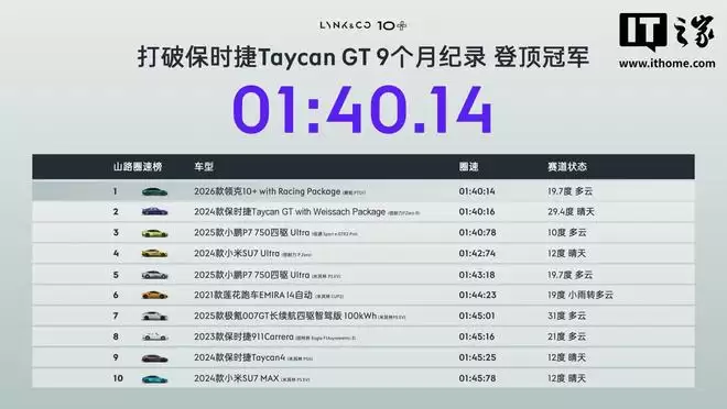 您的位置:首页 >1分40秒14:领克10+超Taycan GT登顶亚洲山脊赛道圈速榜