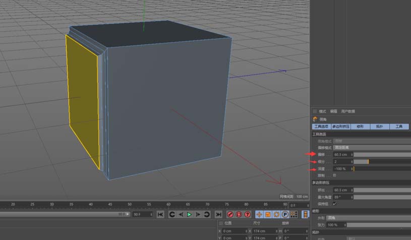 第六步,这才是精雕细琢的关键。在左侧的工具参数面板中,你可以细致调整“偏移”、“细分”和“深度”这几个核心参数。“偏移”控制倒角的大小,“细分”让倒角边缘更圆滑,而“深度”则能创造出向内凹陷或向外凸起的独特变形效果。多试试这几个参数的组合,变化可多了。