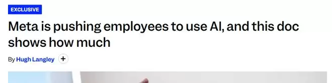 3月29日消息,据国外科技媒体Business Insider报道,Meta公司正在将人工智能工具的应用,从“鼓励使用”推向“目标考核”的新阶段。公司内部已为部分团队设定了明确指标,要求员工在编码等核心任务中,必须达到一定频率的AI工具使用率。