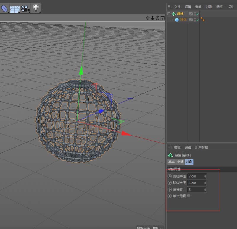 接下来,才是真正“玩”的地方。选中晶格对象,进入它的“对象”属性面板。你会发现这里藏着控制全局的密码:圆柱半径和球体半径。简单来说,前者控制连接杆的粗细,后者决定连接点的大小。多调几次,感觉一下就来了,想要硬朗还是柔和,全凭这两项的数值搭配。