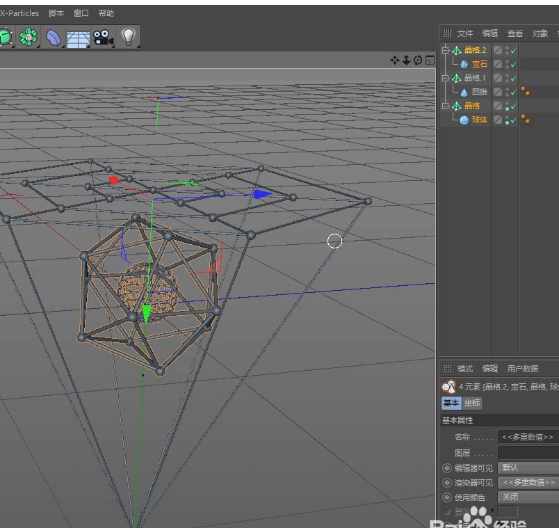 当然,只有一个球体显得单薄些。不妨多复制几个基础对象,比如再加几个大小不一的立方体或圆柱,同样作为晶格的子物体。这样,一个由多个几何体共同构成的复杂晶格结构就诞生了。对象的排布和组合方式,直接决定了最终效果的丰富程度。