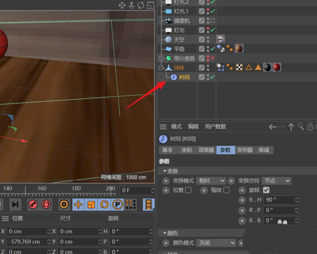 选中时间效果器,进入其属性面板。在“变形器”选项中,将模式从默认的“点”更改为“对象”。这个切换意味着效果器将驱动整个篮球模型进行变换,而不仅仅是其表面的点。
