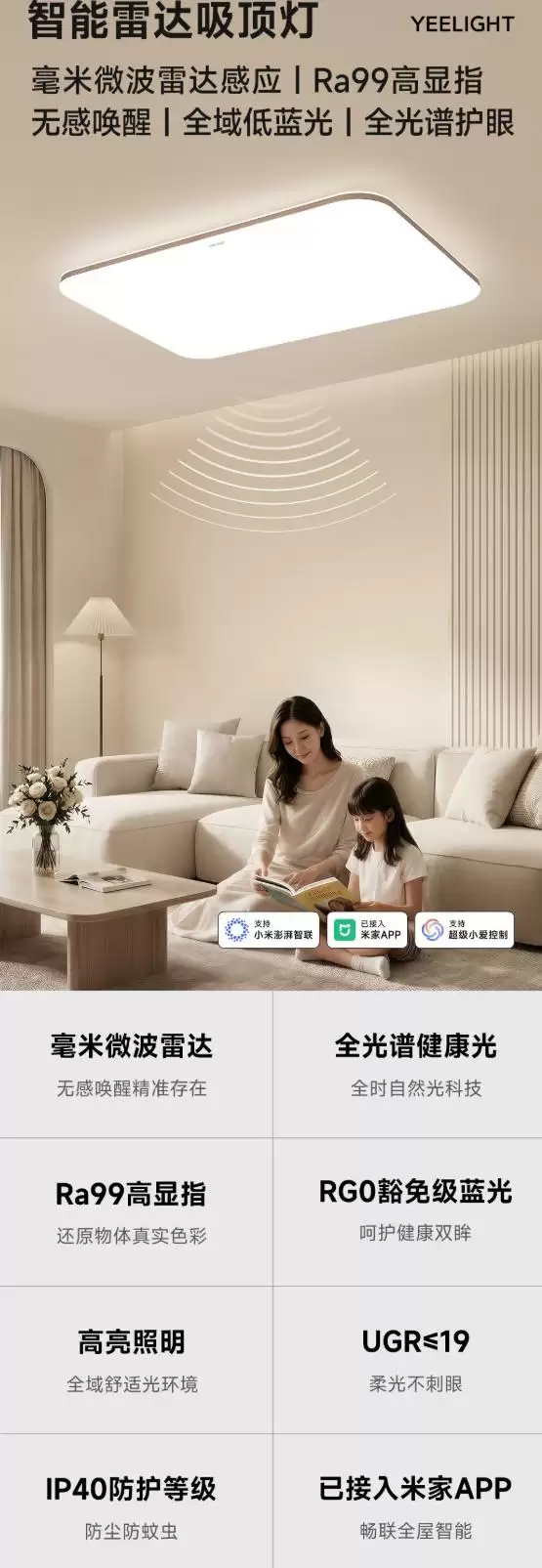 最近,小米众筹平台上线了一款值得关注的智能照明新品——Yeelight智能雷达人在护眼吸顶灯RadarSense。这款产品将毫米波雷达感应、Ra99高显色与护眼技术整合在一起,众筹起步价设定在269元,为智能家居的灯光体验带来了新的思路。