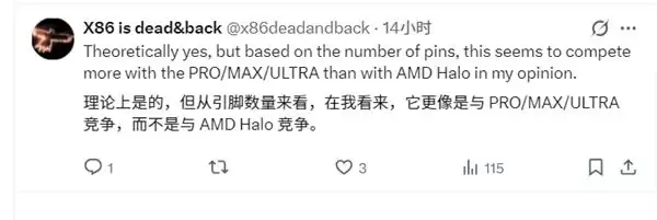 如此庞大的插槽面积绝非偶然。它意味着这个平台对供电能力、I/O传输带宽以及内存信号处理复杂度的要求,都远远超出了常规的移动芯片平台。这几乎明示了Nova Lake-AX的性能定位:它绝非普通的消费级移动芯片。业内爆料者@x86deadandback据此推测,这很可能是一款定位工作站级别的插槽式APU(加速处理单元)。它的市场野心不仅在于直接对标AMD的Strix Halo系列,甚至可能向上挑战PRO/MAX/ULTRA级别的高端产品线。
