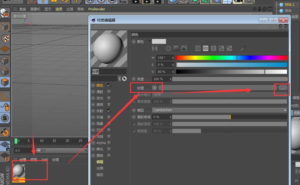 现在,轮到材质登场了。创建一个新的材质球,双击打开材质编辑器。核心操作在这里:找到“颜色”或“漫射”通道,点击它旁边的“纹理”小三角按钮。我们的目标,就是把外面那张准备好的眼球图片“请”进来。