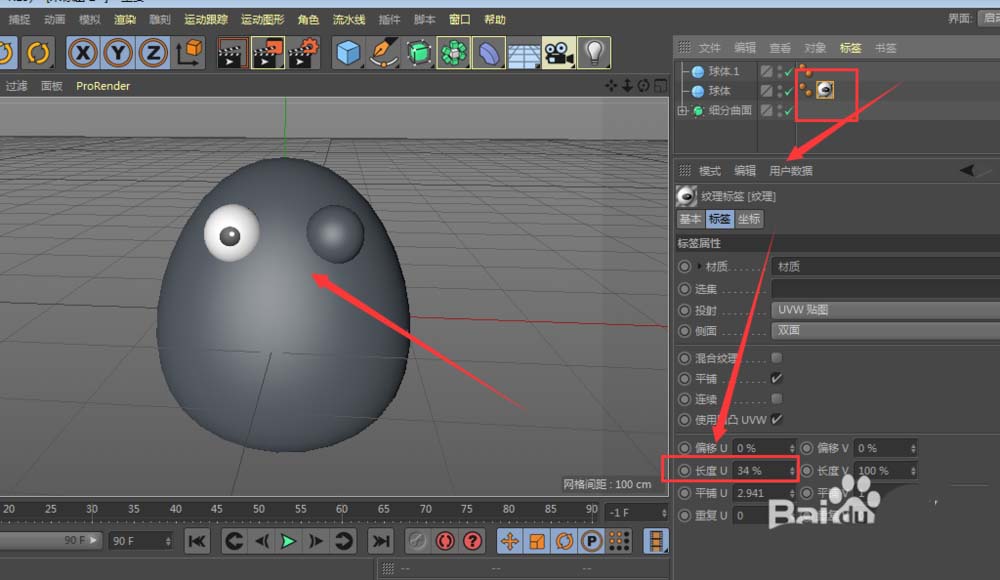 解决这个问题的关键,在于调整贴图坐标。在材质球的属性面板中,找到“纹理”标签(或类似的坐标/映射选项)。重点调整“长度U”或“偏移U/V”这类参数,看着视图中的实时预览,慢慢拖动滑块,直到眼球图案在球体上显示得既端正又大小合适。