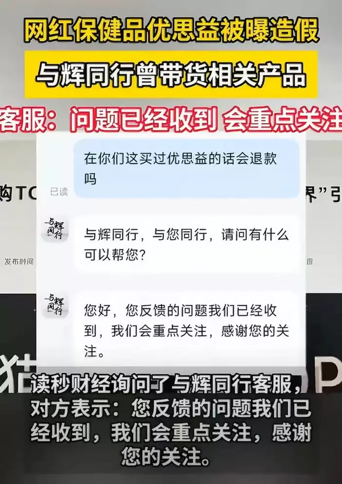 风波起来后,态度成了关键。4月2日,有媒体以消费者身份咨询与辉同行客服退款事宜,得到的回复只是机械地重复“品牌方已发布相关声明”。当记者提及“已有多位明星表示可全额退款”时,客服的回应依旧不痛不痒:“您反馈的问题我们已经收到,会重点关注。”