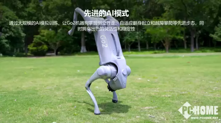 一同登场的,还有宇树的四足机器狗Go2。这个被称为具身智能新物种的小家伙,技能点相当丰富:跳跃、伸懒腰、握手、前扑、蹲坐都不在话下。它标配了自研的4D超广角激光雷达,拥有360°*90°的超广角感知能力,感知系统性能提升高达200%,能应对各种复杂地形。更重要的是,大模型的强势赋能,正在帮助Go2更好地理解周遭世界,并做出更智能的决策。