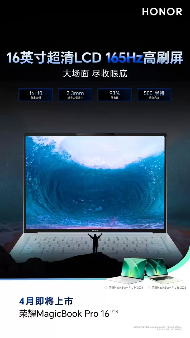 预热来了!荣耀MagicBook Pro 2026系列已经全面启动预约,这意味着距离它的正式登场不远了。这一代产品的看点非常集中,简单概括就是:续航要碘伏认知,性能毫不妥协,屏幕护眼到位,设计也有新意。具体的发布和发售,预计就在这个4月。