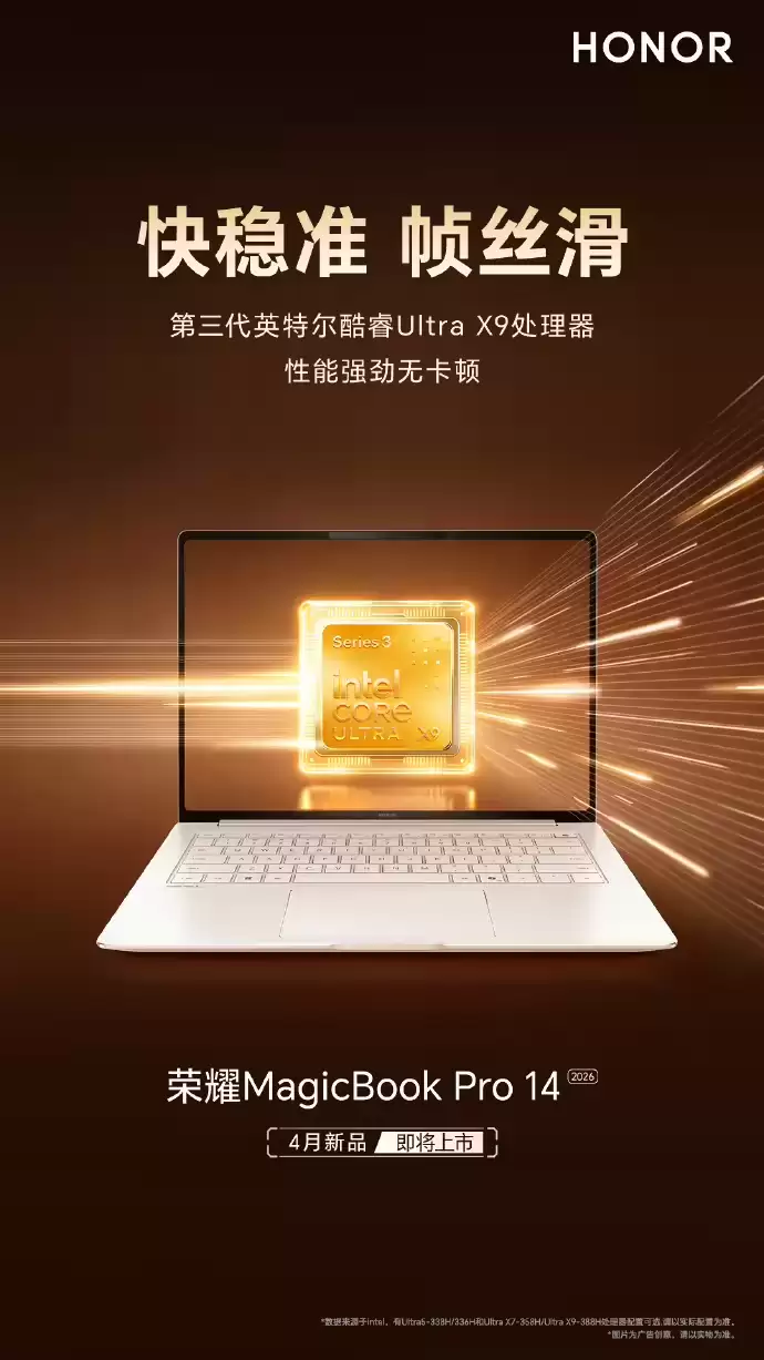 4月2日,荣耀正式揭开了新一代MagicBook Pro 14 2026款的面纱,并已同步启动全渠道预约。这款定位高端的轻薄创作本,显然希望在性能释放、长续航与极致便携之间,找到一个让专业人士心动的平衡点。