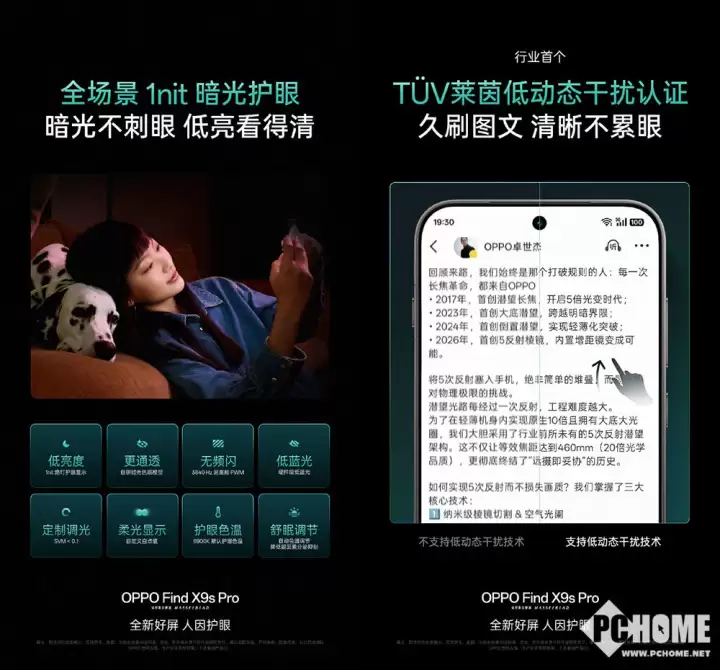 您的位置:首页 >私人订制舒适度 Find X9s Pro配明眸护眼屏
