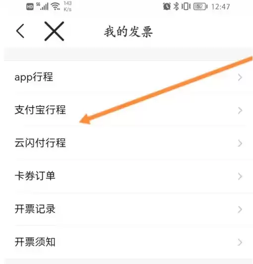 进入电子发片页面后,你会看到不同的行程来源选项。这里需要点击页面上方的“支付宝行程”入口。
