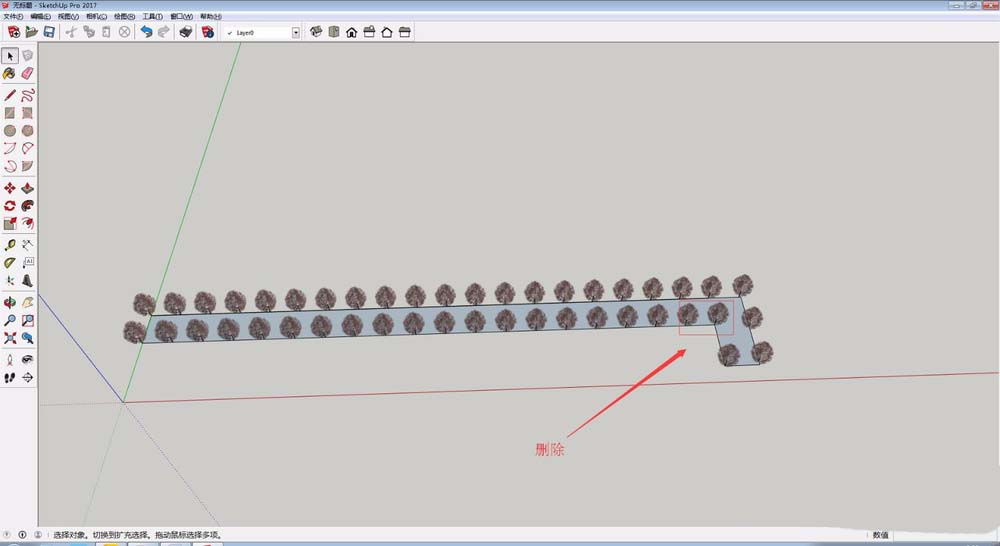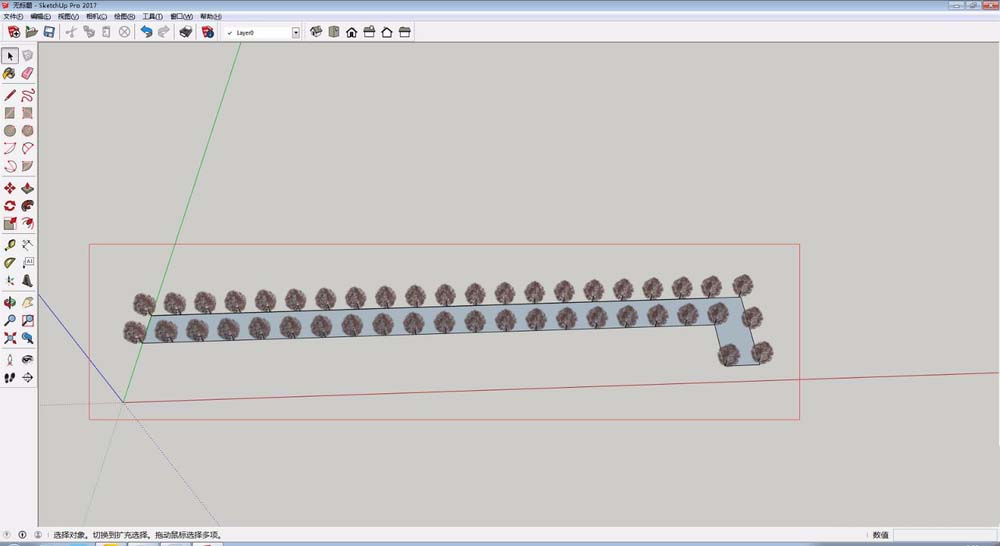 规划好了,就开始“动工”。先把那棵作为样本的树,移动到道路这一侧的起点位置,准备从这里开始我们的“种植”作业。