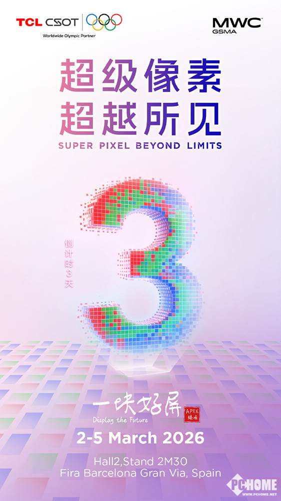 一则来自TCL华星的官方预告引发了关注。消息称,他们确定将参展2026年的世界移动通信大会,届时会亮出一块“好评”屏幕,业内预计,其核心看点便是“超级像素”技术。