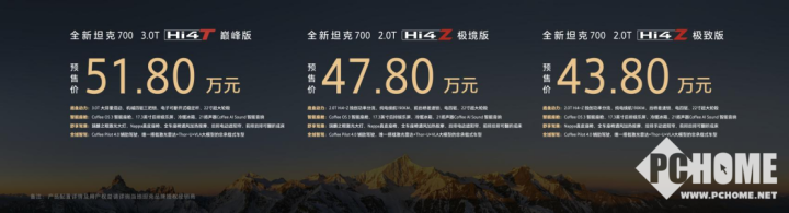 时间拉回到2026年3月30日,在坦克品牌“新时代新旗舰·人生自此新境”的发布会上,全新坦克700揭开了面纱。其核心任务很明确:开创一个豪华SUV的新品类。官方预售价格区间定在43.80万元至51.80万元,一口气推出了三款车型。关键点在于,这三款车分别搭载了两套不同的王牌动力系统:3.0T Hi4-T与2.0T Hi4-Z,意图从动力根源上就实现全场景覆盖。