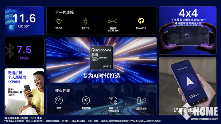 作为本次发布的明星产品,高通FastConnect 8800移动连接系统带来了革命性的飞跃。它是全球首款采用4x4 Wi-Fi射频架构的移动解决方案,实现了超越10 Gbps的突破性传输速率。与上一代Wi-Fi 7产品相比,其性能提升高达2倍,而千兆级无线网络的覆盖范围更是扩大了3倍。这意味著,更快的速度和更稳定的信号将成为下一代移动设备的标配。