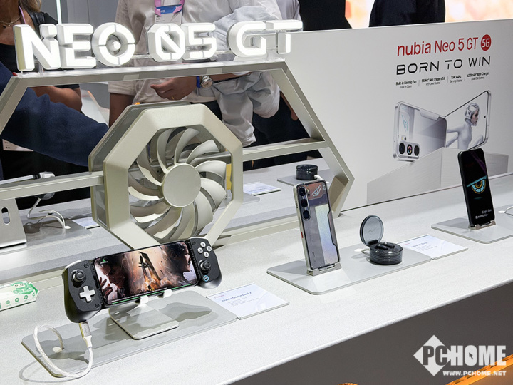 更有意思的是,努比亚Neo 5系列并不仅限于手机本身。现场展示显示,它可以搭配一套专业手柄配件,连接后分居手机两侧,瞬间就能变身为一台掌上游戏机。此外,搭配nubia GT Buds耳机与磁吸散热风扇,能够构建出更为沉浸和完整的移动游戏装备生态。