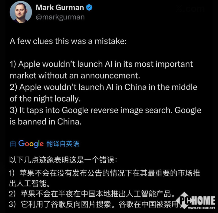 根据知名爆料人马克·古尔曼的消息,国行版苹果智能功能在技术上其实早已准备就绪。但关键在于,它尚未获得必要的监管部门批准,因此苹果自己也没有确定的发布时间表。这次所谓的“上线”,更大可能是一次意外事件,与同期测试的iOS 26.5 Beta版并无关联。