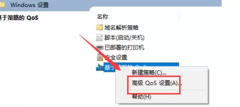 右键点击“基于策略的QoS”,从弹出的菜单中选择“高级QoS设置”。