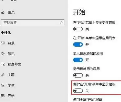 3. 接下来,我们需要关闭系统的推荐功能。打开“设置”,进入“个性化”选项,找到“开始”菜单设置。在这里,记得关闭“偶尔在‘开始’菜单中显示建议”这个开关。这一步能有效减少系统主动推荐的应用。