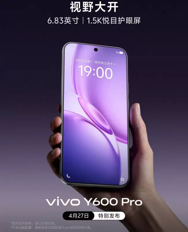 您的位置:首页 >vivo Y600 Pro 手机官宣配备 6.83 英寸 1.5K 护眼屏 4 月 27 日特别发布