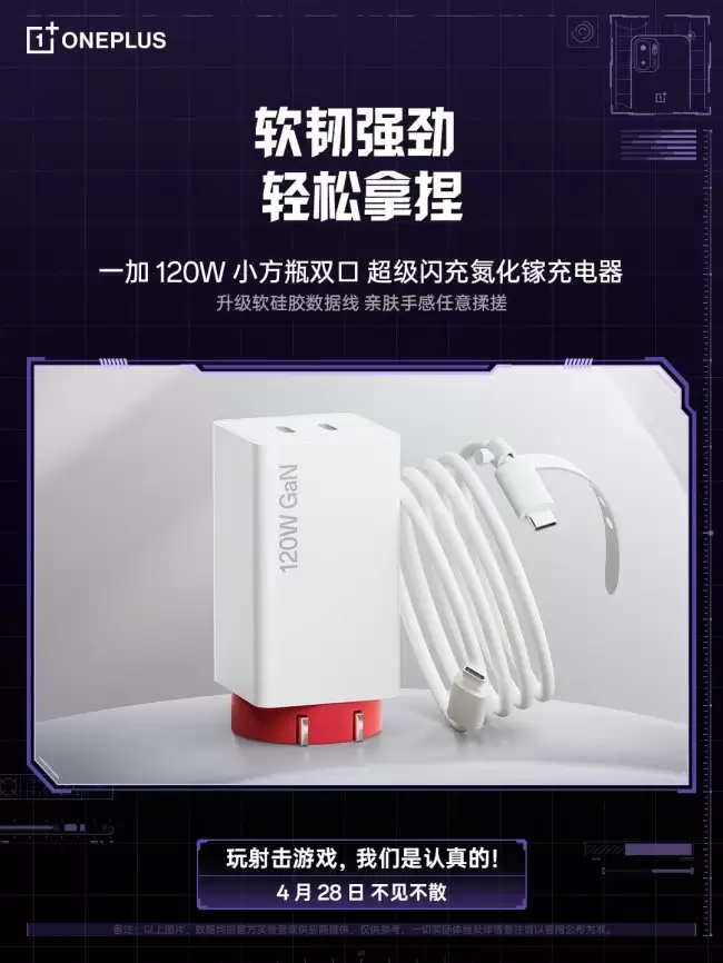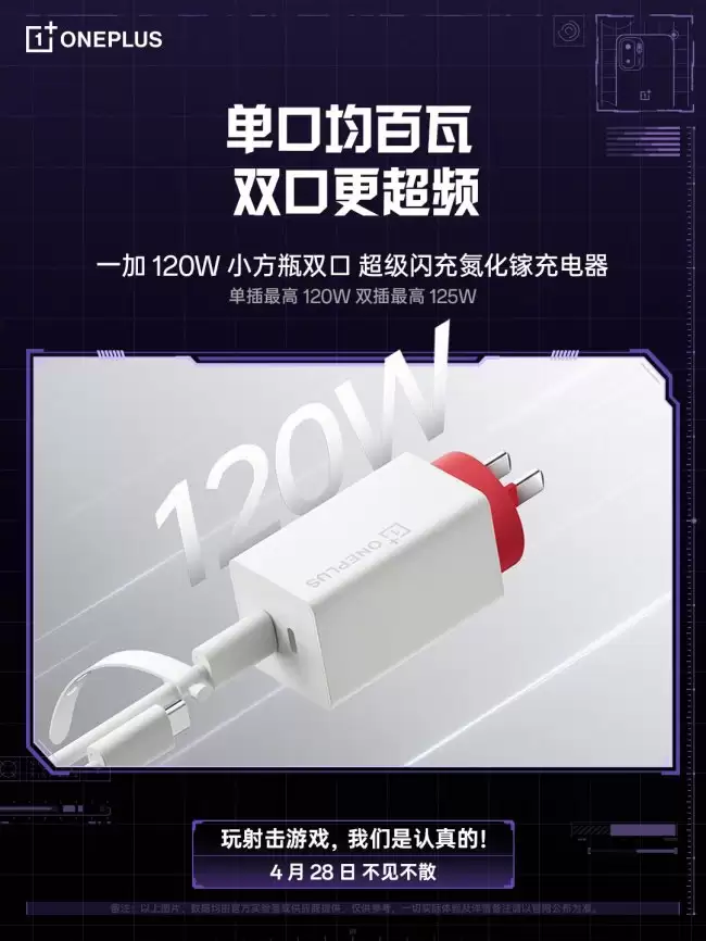 您的位置:首页 >一加发布120W双口氮化镓充电器最高输出125W定于4月28日