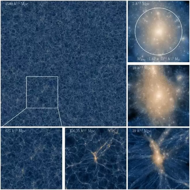 此后,Millennium-II、Millennium-XXL、日本的 Uchuu 和欧洲的欧几里得旗舰模拟(Euclid Flagship II)等项目相继推出,不断推高模拟的体量上限。