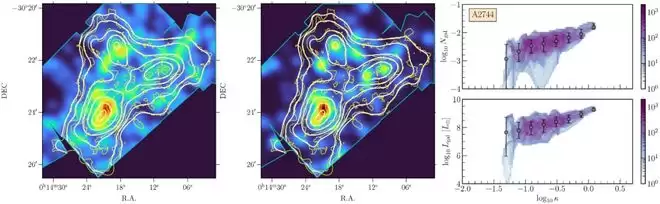 值得注意的是,研究团队在将解析模型应用于“千衍”时,并未针对 A2744 进行专门的参数调优,这确保了比对结果的客观性,避免了“过拟合”的嫌疑。这强有力地证实,即使在宇宙最极端的并合环境下,标准ΛCDM 宇宙学模型依然有效,而“千衍”模拟也完全具备刻画这种极端物理过程的能力。