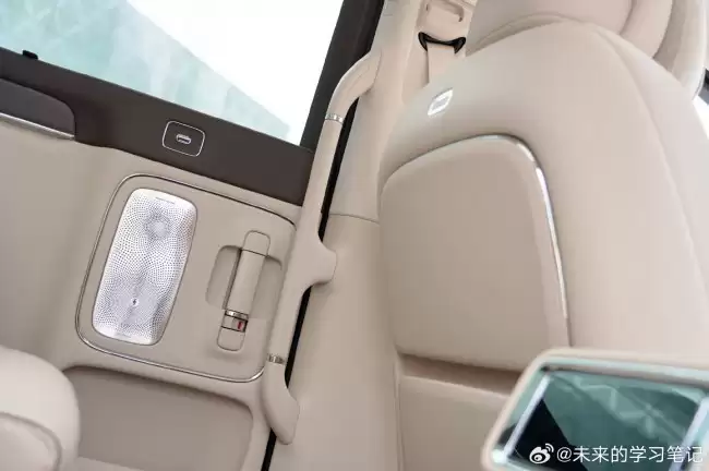 来到第二排,娱乐和舒适配置直接拉满。头顶是一块21.4英寸的超大吸顶屏,并且支持8档倾角调节,无论坐姿如何都能找到最佳观看角度。中央扶手箱尾部,那个被称为HIMA的“小手机”颇为吸睛——它实际上是一个可拆卸的后排控制屏,空调、音乐等常用功能都能在这里直接操作。而这个“小手机”的下方,则隐藏着智界V9的车载恒冷智能冰箱,10.9升的容量、40cc的排量,即便断电后还能持续保冷12小时,对于长途出行或家庭用车场景来说,是个相当贴心的配置。