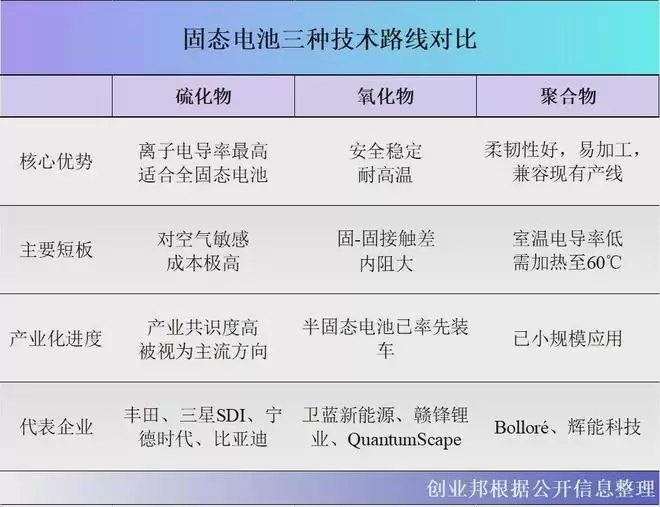 当时,行业主流的技术路线有三条:聚合物、硫化物和氧化物。日韩巨头如丰田、三星SDI等主攻的硫化物路线被普遍看好,而氧化物路线则因导电性差等问题,被认为难以突破。