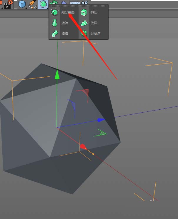 具体怎么做呢?在菜单栏里找到“细分曲面”功能,点击添加。关键的一步来了:你需要把宝石模型拖拽到新生成的“细分曲面”对象的子集里。记住,一定要是子集关系,这样效果才会作用到模型上。