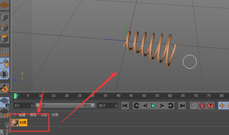 模型大功告成!最后一步,就是给它穿上“外衣”。打开材质面板,创建一个新材质球,调整颜色、反射或者金属度等属性。然后把材质球直接拖拽到视图中的弹簧模型上,稍加渲染,一个质感十足的弹簧模型就诞生了。