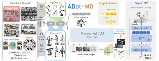 说到技术突破,就不得不提高德在3月31日的一个大动作。当时,高德宣布正式全量开源ABot-M0模型,并称之为全球首个基于统一架构的机器人具身操作基座模型。简单来说,这个模型就像一个“通用大脑”,目标是能适配多种不同形态的机器人身体,让它们都具备强大的感知和行动能力。