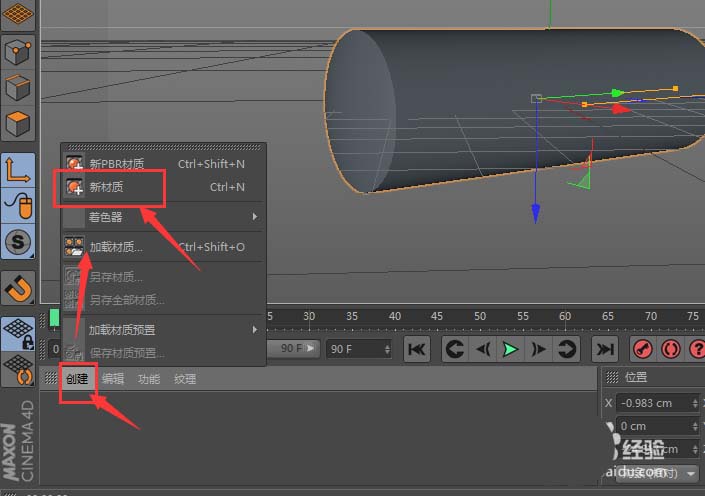 接下来是关键操作:在软件界面下方的“创建”菜单里,找到“新建材质”这个选项并点击它。这是打开材质世界的大门。