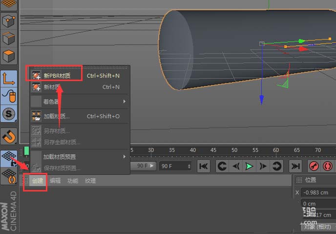 第一步,咱们从创建对象开始。新建一个三维圆柱体,就像图里这样,你完全可以随意调整它的位置、旋转和缩放,摆个自己喜欢的造型。