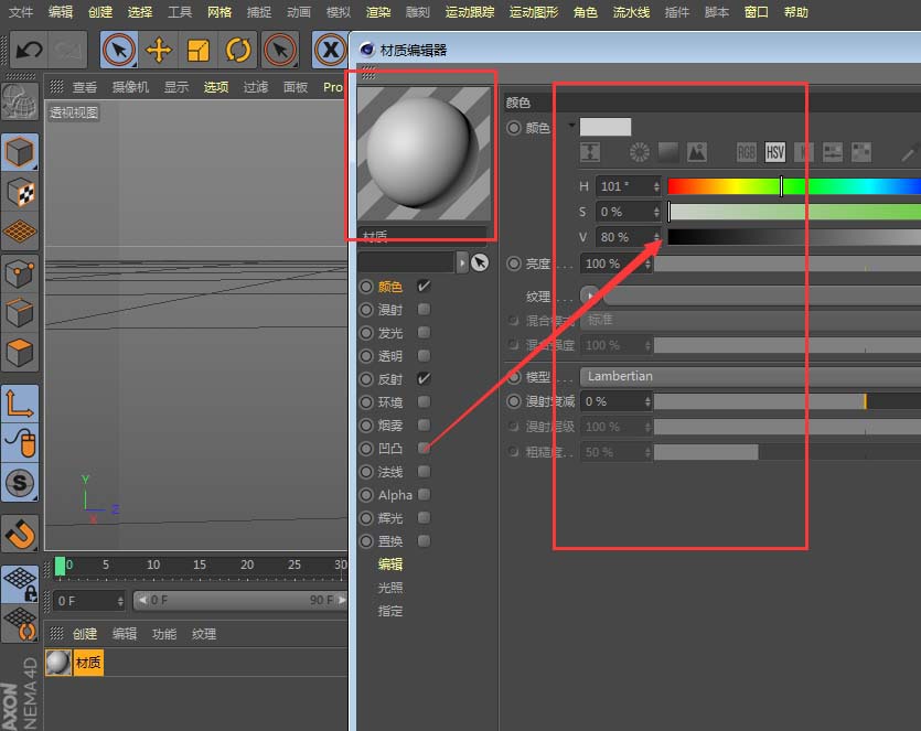 现在材质是附上去了,但怎么调整呢?很简单,在这个材质球上双击鼠标,就能打开它的属性编辑器,所有的魔法都在这里发生。