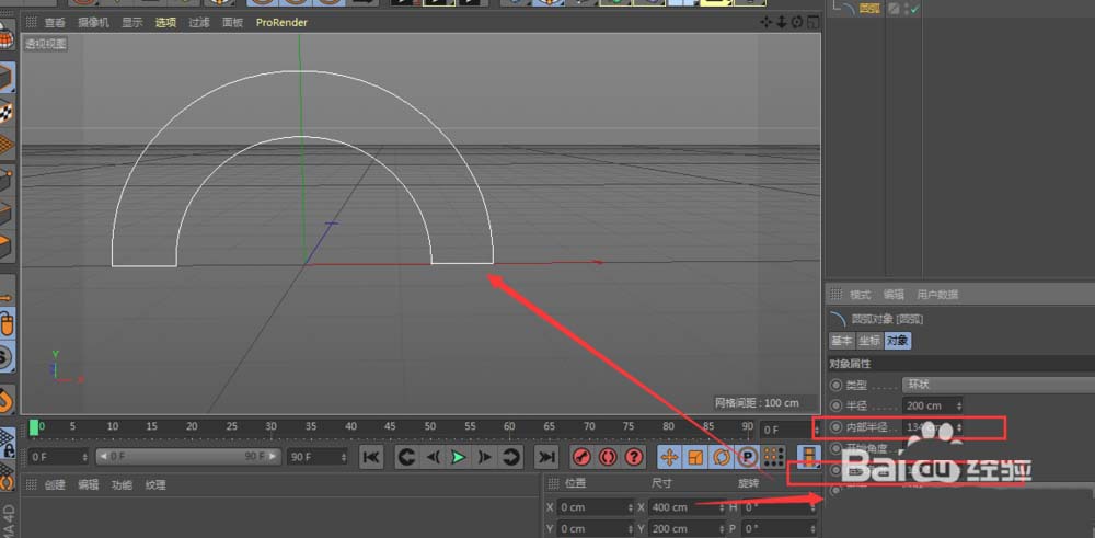 有了封闭的圆环,下一步就是把它变成我们想要的半圆拱形。继续在属性面板中操作:你可以通过调整“半径”数值来控制这个环的大小。接下来,找到“结束角度”这个参数,将它设置为180度。看,视图中的完整圆环瞬间变成了一个完美的半圆形,这就是拱形的基础截面了。
