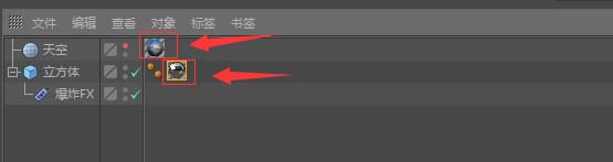 创建好后,把玻璃材质球拖拽给立方体,把环境材质球拖拽给天空对象。