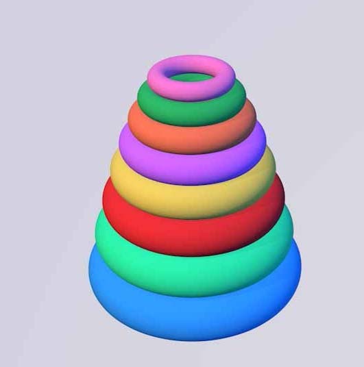 整个过程就是这样:从单个圆环出发,通过克隆和参数化调整快速生成结构,再转为独立对象进行个性化着色。思路清晰,操作也直接,多尝试几次,你肯定能玩出更多花样。