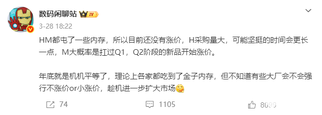 其中,华为凭借其巨大的采购体量,库存水位可能更高一些,抗压周期或许会更长。而小米方面,其现有库存大概率足以支撑整个第一季度,但进入第二季度后发布的新品,恐怕就很难回避成本压力,涨价几乎已成定局。