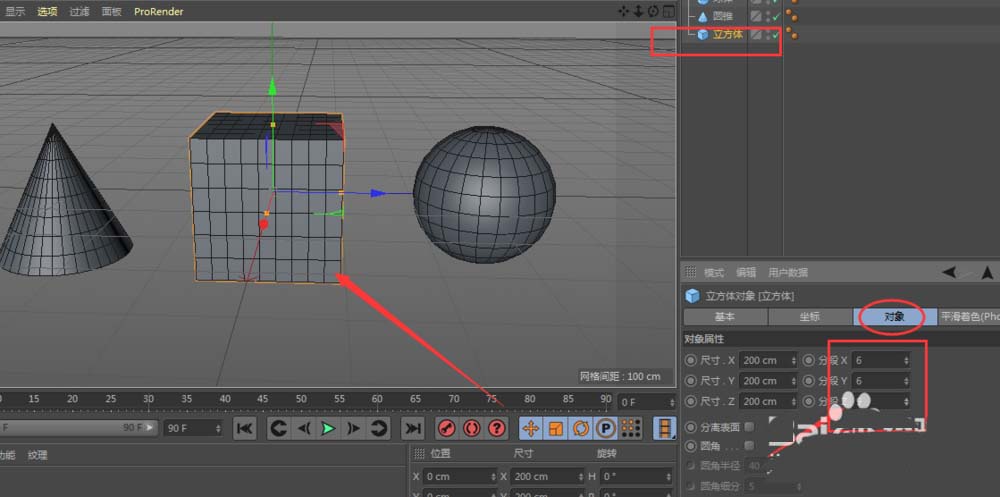 不过,这里有个细节值得注意。以最基本的立方体为例,它初始状态的分段数是1x1x1,这意味着每个维度上只有一条分段线。在这种设置下,即便切换到线条模式,你能看到的布线信息也非常有限。想要观察更丰富的网格结构,就需要在选中对象图层后,去调整其“对象属性”中的分段数量,增加X、Y、Z各个方向上的细分,如下图所示。