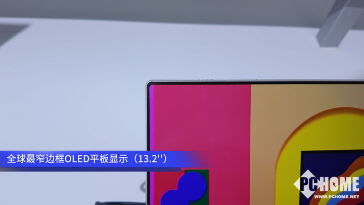 另一款面向平板的13.2英寸OLED屏幕,则在形态设计上做到了极致:四边等宽的对称设计,边框宽度仅为1.3毫米,堪称全球最窄。它支持3.1K超清分辨率(3120×2080)、120Hz自适应刷新率,并支持悬停手写笔操作,目前已具备量产能力,将助力下一代平板电脑实现更纤薄的机身。