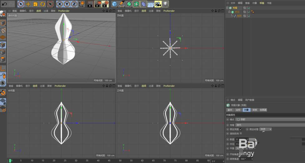 效果不够?那就调参数。增加“数量”,让“枝叶”更密集;调整“半径”,控制树冠整体的丰满度。这里有个容易出错的细节:在“对象”属性页里,一定要留意“平面”的方向选择,它决定了克隆出来的物体围绕哪个轴旋转。通常默认是XZ平面,但如果效果不对,可以尝试切换到XY或YZ平面看看。