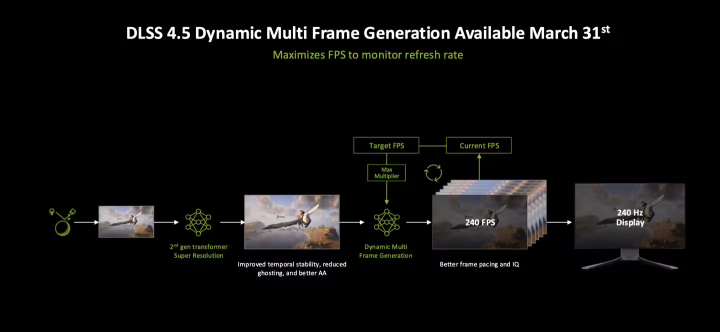 您的位置:首页 >英伟达DLSS 4.5六倍帧生成3月31日上线,RTX 50系专属