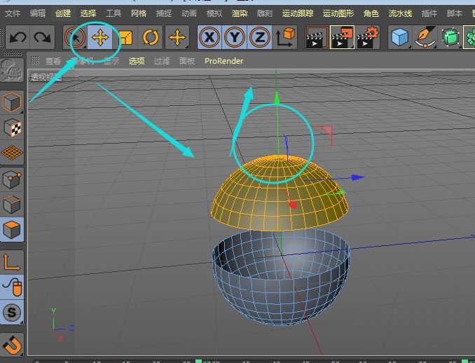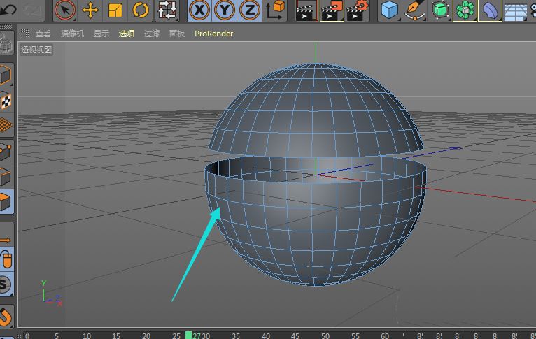 至此,大功告成。你可以对选中的上半部分进行自由移动、旋转等任何操作,一个干净利落被分割开的球体模型就出现在你眼前了。