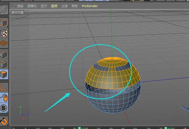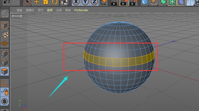 使用循环选择工具,轻松选中球体赤道位置的那一圈面,具体范围可以参考下图。