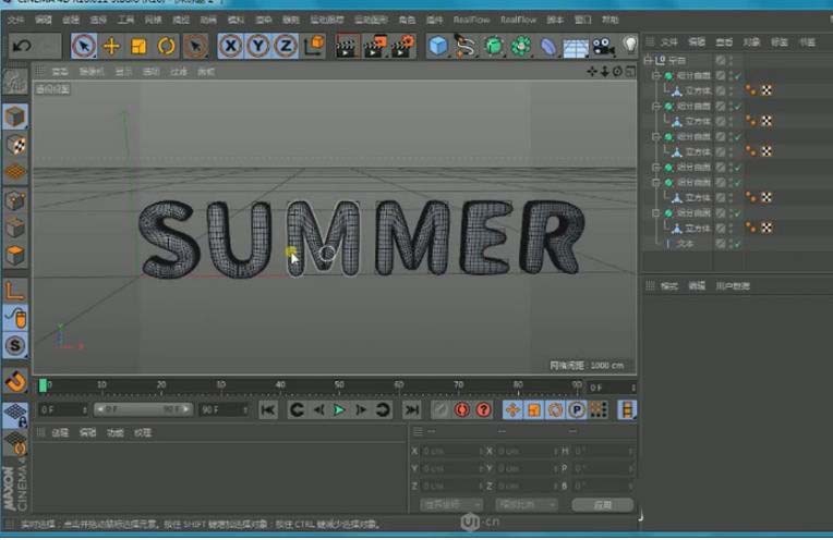 第二步,刻画融化的形态。这里要用到“切刀”工具。按住Shift键在模型上划出代表融化区域的切割线,通常可以按Alt+X键快速添加四条线,形成一个局部的细化网格。用同样的方法,处理其他需要制作冰块效果的文字。这一步的目标,是为后续制作不规则融化和水滴细节准备足够的面数。