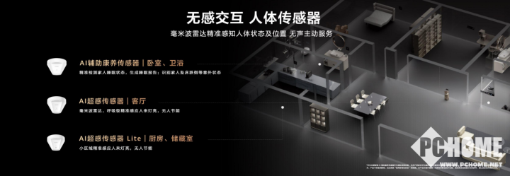 语音交互已经如此聪明,无感交互则更显主动与贴心。通过AI超感传感器,系统能精准捕捉人的位置,实现“人来灯亮、人走灯灭”的自动化体验。空调出风可以聪明地避开人体,呵护家人健康;AI辅助康养传感器不仅能监测睡眠质量、生成报告,更能敏锐识别跌倒、坠床等意外状况并及时告警。甚至连空气都变得“懂事”——当检测到室内二氧化碳浓度过高时,系统会自动联动设备开启富氧模式。看,这才是深度融合的AI该有的样子:有温度,能共情,深入每一个生活场景。