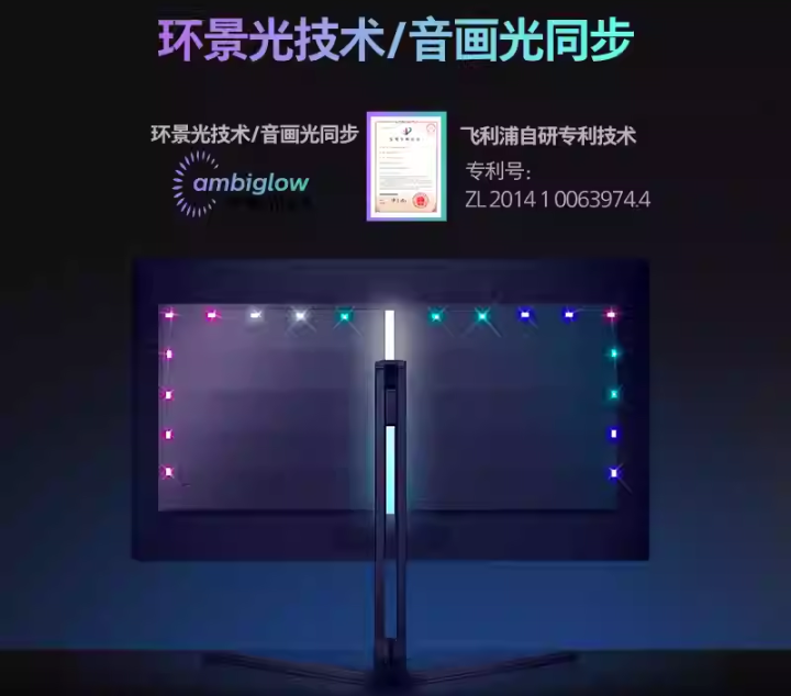 在提升使用体验的细节上,这款显示器考虑得相当周全。背部配备了AmbIglo环景光效,能营造沉浸式的游戏氛围;内置的双5W扬声器省去了外接音箱的麻烦;全功能人体工学支架支持升降、俯仰和旋转调节,总能找到最舒适的观看角度。